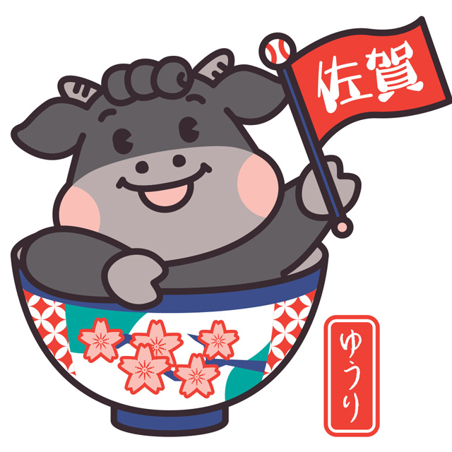 かわいい佐賀牛のキャラクターが有田焼に入っているデザインで、佐賀県を象徴する要素がふんだんに詰め込まれたデザインです♪(家族の力も借りて作画をしたとか・・?)