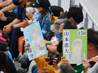 画用紙に似顔絵や応援メッセージを描いてきて、イニング間にスタンド席からカメラに向かってアピールしよう♪入賞した方には、後日あなたが描いた選手の直筆サイン入り色紙が贈られます。大人の方も大歓迎です!