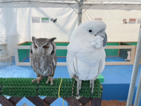 ケヅメリクガメ(大)、小型フクロウ、ハリスホーク、オウム、マイクロブタ、モルモット、ハリネズミ、白蛇、イグアナ、フトアゴヒゲトカゲ、プラスコツメカワウソ、ムツオビアルマジロ など