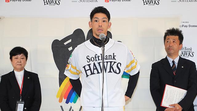 今回この支援をしようと思ったきっかけは、僕自身が独立リーグのときに色々な方々からの支援を受けて野球を続けられた、そして、プロに入ってFA権を取りホークスに入団できたという経緯もあり、何か恩返しできることがないかと考えました。