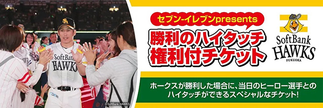 ホークスが勝利すればヒーロー選手とハイタッチできる超人気企画「セブン‐イレブン presents 勝利のハイタッチ権利付チケット」を7月PayPayドーム開催4試合(鷹祭2023は発売済)で販売!ホークス選手と触れ合える、またとないチャンスです♪5月12日(金)10:00よりセブン-イレブン・セブンチケット限定で、各日限定60名の販売となります。完売必至の人気チケットのためお早めにお買い求めください!
