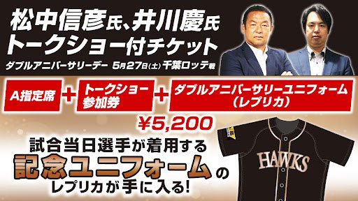 5月27日(土)松中信彦氏・井川慶氏トークショー付チケット好評販売中!↓詳細はこちら