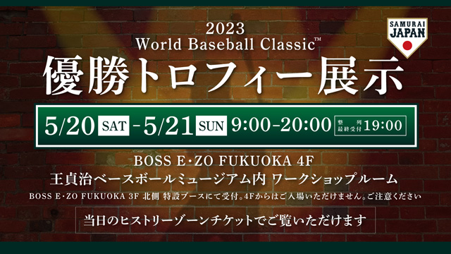 野球日本代表「侍ジャパン」が今年3月に行われた2023 World Baseball Classic™にて獲得した優勝トロフィーを、5月19日(金)~21日(日)の埼玉西武ライオンズ戦で展示いたします。