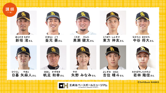 ホークスでも活躍した新垣コーチや中谷コーチ、釜元コーチ、黒瀬コーチなど、総勢10名のアカデミーコーチが土日祝に王貞治ベースボールミュージアムで指導してくれます。