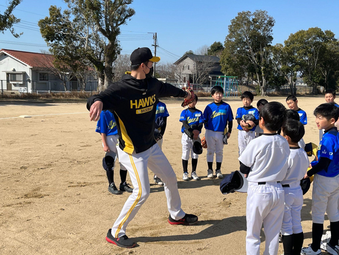 皆さまからの募金は、アカデミーコーチやホークファミリーがチームや学校、保育園・幼稚園を訪問し指導を行う野球教室、野球大会の開催、ベースボールスクールの運営などに活用されます。
