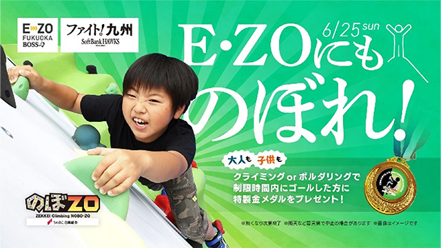 E・ZOに“のぼ”る?!絶景3兄弟「のぼZO」SMBC日興証券「金メダルチャレンジ」!見事チャレンジが成功すると、オリジナルの金メダルを贈呈します。大人の方も対象です♪