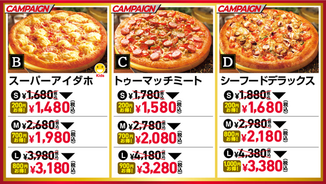 ナオツイスターサンドの新発売を記念し、手作りサーターアンダギー3個と野菜生活100沖縄シークヮーサーミックス1本を「沖縄セット」として同時発売!通常280円相当のセットが東浜投手の背番号「16」にちなみなんと160円!(120円お得)。また、ナオツイスターサンド以外に「スーパーアイダホ」「トゥーマッチミート」「シーフードデラックス」の人気ピザ3種もお得なキャンペーン割引価格最大1000円割引で登場。大人気、熱い男のトゥーマッチミートもおススメです!