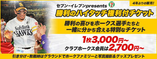 完全キャッシュレスデー:「PayPayドーム」内での買い物のお支払いがキャッシュレス決済のみになります。当日ドーム内では現金でのお支払いはできませんので、ご来場前にお手持ちの電子マネーやQRコード決済にあらかじめ余裕をもった金額をチャージされたうえでご来場ください。