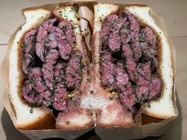 別名「肉のエアーズロック」と名付けた国産牛をふんだんに使ったステーキサンドを提供!