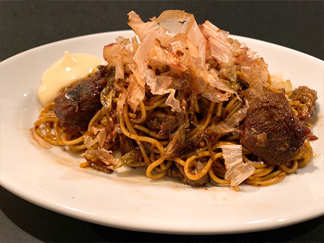 安くて美味しいを追求する焼肉店です。今回は精肉店から出る牛すじなどを柔らかく炊いて焼きそばの具にしました。