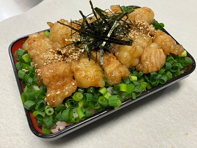 炊きたてご飯の上に贅沢にのせて提供するやみつき必至の商品です。