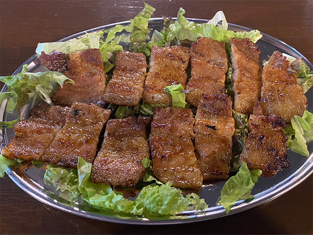 香ばしくもジューシーな骨つきカルビ。肉肉しさを残し、おかずにもおつまみにも最適な一品です。
