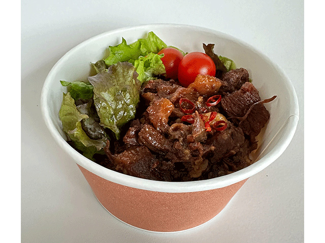 特製ダレが牛肉に絡み合い、甘味のある香ばしい味に仕上がっています。どんぶりスタイルで手軽にお召し上がりいただけます。