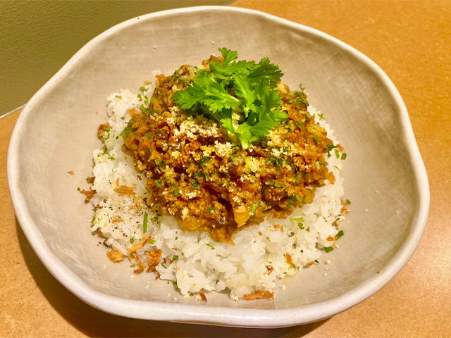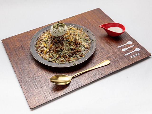国産和牛の挽肉をふんだんに使い、あご出汁と鶏白湯を掛け合わせた、出汁欧風キーマカレー。