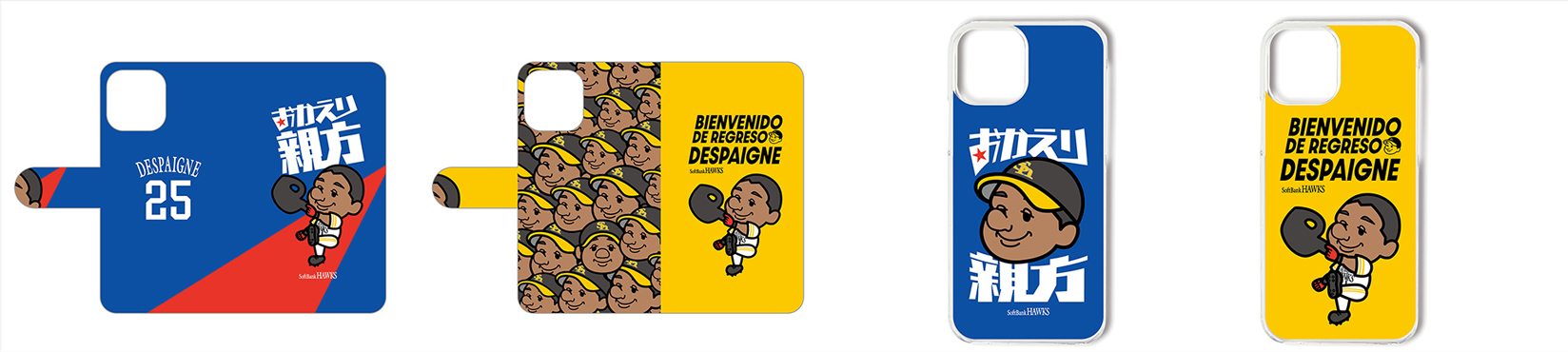 デスパイネ選手のチーム復帰を歓迎するグッズが販売中!ホームラン後のパフォーマンスをイラスト化し、スペイン語(選手の母国語)で「おかえり」のメッセージと、監督が命名した「親方」のニックネームがはいった2パターンのデザイン展開です!これらのグッズでデスパイネ選手にエールをおくろう!