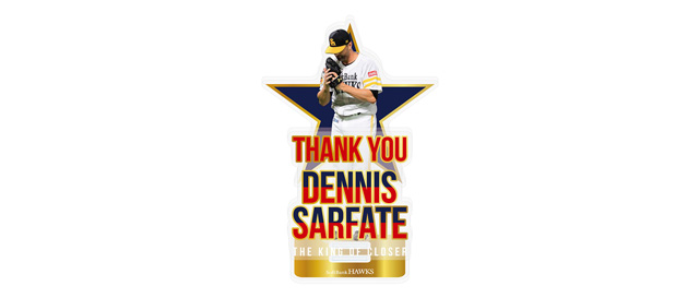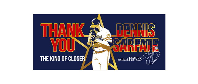 8月19日(土)埼玉西武戦、球団創設85周年&ドーム開業30周年記念イベントの最終試合となる第5回「ダブルアニバーサリーデー」で、鷹の「キング・オブ・クローザー」ことデニス・サファテさんがゲスト登場することを記念し、サファテさんありがとうグッズをHAWKS公式オンラインストアで受注販売中!