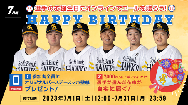 7月1日(土)~31日(月)の期間、7月生まれの選手へエールを送るギフティングイベントを開催します。専用サイトからメッセージやギフティング用のスタンプで応援の気持ちを投稿してください。イベントの参加者全員がもらえる限定プレゼントや、選手が選んだ花束のお返しもご用意。お誕生日を迎える選手にたくさんのエールのプレゼントをお待ちしています!
