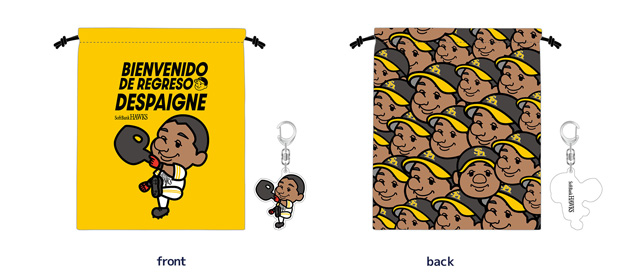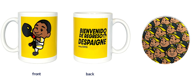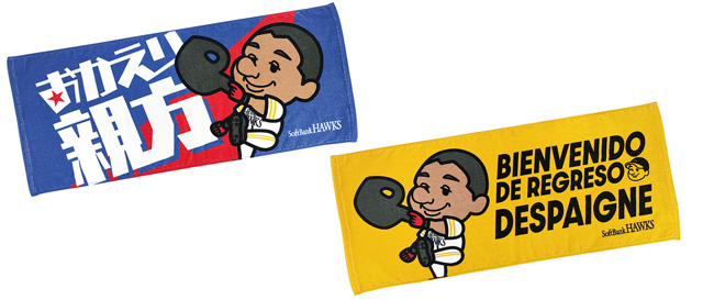 デスパイネ選手のチーム復帰を歓迎するグッズ第2弾が登場!新商品に加え、第1弾で人気の高かった商品も販売を再開しました。ホームラン後のパフォーマンスをイラスト化し、スペイン語(選手の母国語)で「おかえり」のメッセージと、監督が命名した「親方」のニックネームがはいったデザインに、新たに柳田選手がヒーローインタビュー時に放った一言が話題となったメッセージタオルも登場!