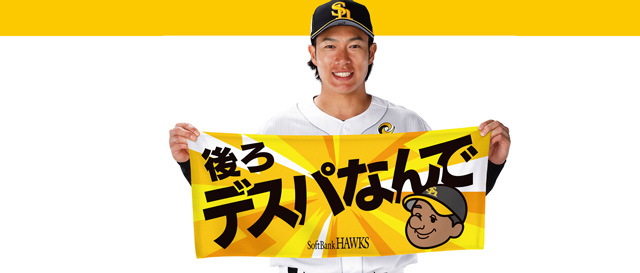 柳田選手がヒーローインタビュー時に放った一言が話題となったメッセージタオル!後ろにデスパイネ選手が控えていることによる安心感はチームにとって絶大です!