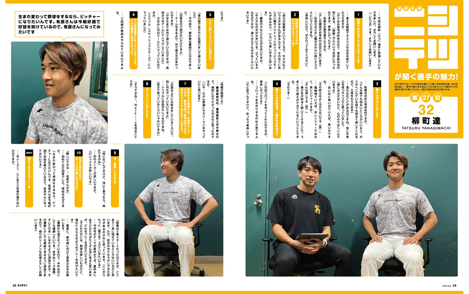 月刊ホークス定期購読プレミアムプランにご加入の読者がインタビュアーとして選手に質問する「読者が選手にインタビュー」。今回は東浜巨投手に登場してもらいました。ファンならではの質問に全力で答えてくれています!