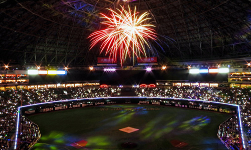「PayPayドームの貴賓室」スーパーボックスは、お食事を楽しみながら、野球観戦ができる特別なプライベート空間です。ドーム全体が見渡せるバルコニー席からは、スタンド席では体験できない試合の熱気や勝利の花火をお楽しみいただけます。