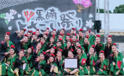 久留米市草野町より参ります「草野キッズビクス」です!小学2年生~高校3年生の35名と旗を振ってくださる保護者様とともに、 よさこい を演舞します!