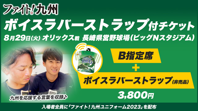 選手がいつでも話しかけてくれる人気のボイスラバーストラップ。ファイト!九州限定バージョンのボイスラバーストラップ付のおトクなチケットを数量限定で好評販売中!残りわずかのため、ご購入はお早めに!