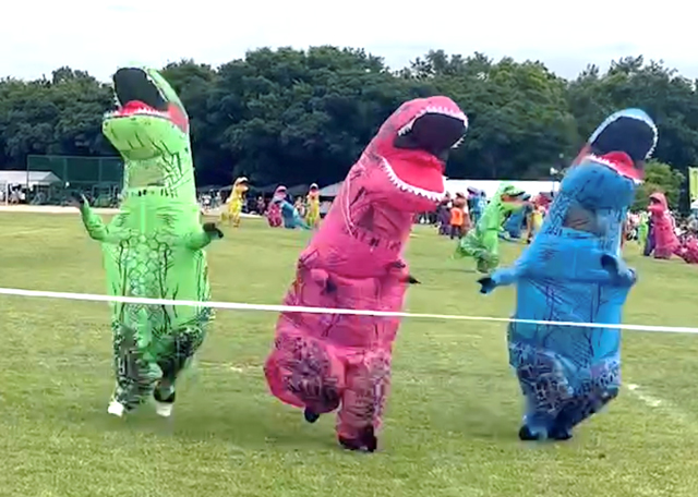 | (6) | ティラノサウルスレース ※特設コース(50m)を ティラノサウルスの着ぐるみを着て走ります。 |