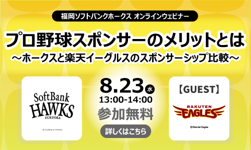 8月23日(水)に新規スポンサー向けオンライン説明会「プロ野球スポンサーのメリットとは~ホークスと楽天イーグルスのスポンサーシップ比較~」を開催します!