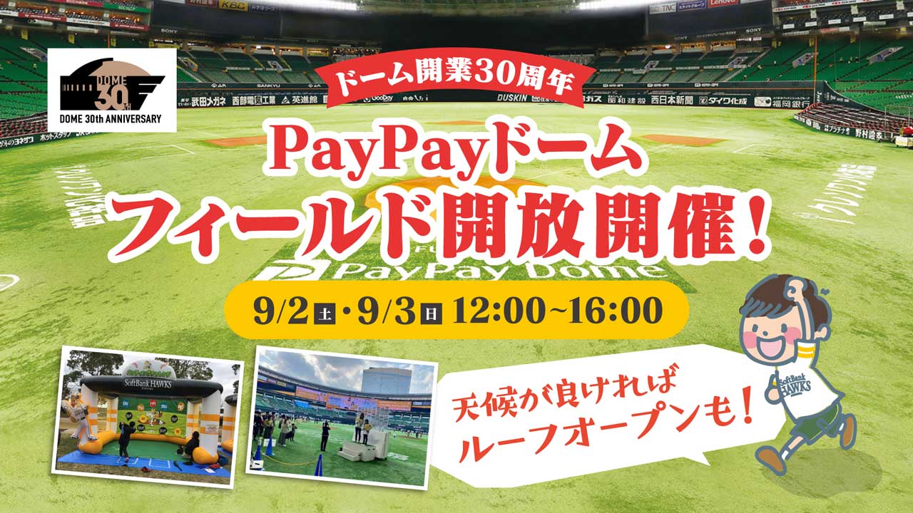 大好評のPayPayドームフィールド開放を9月2日(土)・3日(日)に開催!外野エリアではキャッチボールや写真撮影などを楽しめます♪また、『王貞治ベースボールミュージアム』の当日チケットをご提示で、ベースランニングなどの特別な体験ができる内野指定エリアにも入場可能!