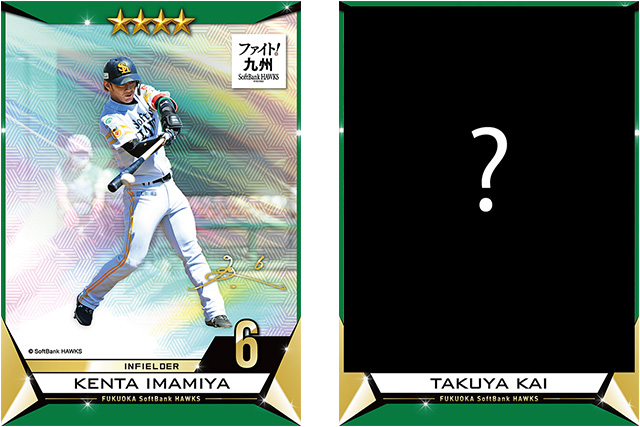 ファイト!九州開催を記念して、モバタカ会員の方はタカコレで使える今宮選手、甲斐選手の☆4デジタルカード2枚が期間中に応募すると必ずもらえます。