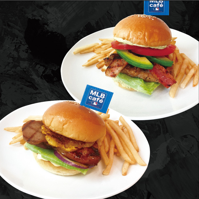 | (上)牧原選手のBLTバーガー (下)周東選手のテリヤキチキンバーガー |