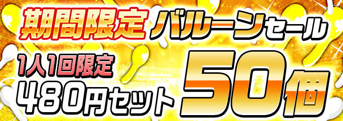 有料カードパックを引くのに必要なサービス内通貨「バルーン」を、通常480円で25個購入できるところ、コラボイベントを記念して、480円でなんと50個購入できる超オトクなセールを期間限定で開催!