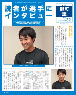月刊ホークス定期購読プレミアムプランにご加入の読者がインタビュアーとして選手に質問する「読者が選手にインタビュー」。今回は柳町達選手が登場してくれました。ファンからの質問に、1問ずつ丁寧に全力で答えてくれています!