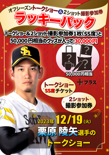 12月19日(火)に栗原陵矢選手のトークショーが開催決定!トークショー付きの福袋を11月26日(日)のファンフェスティバル当日から販売します。また、トークショーペアチケットプレゼントSNSキャンペーンも開始♪ぜひご参加下さい!
