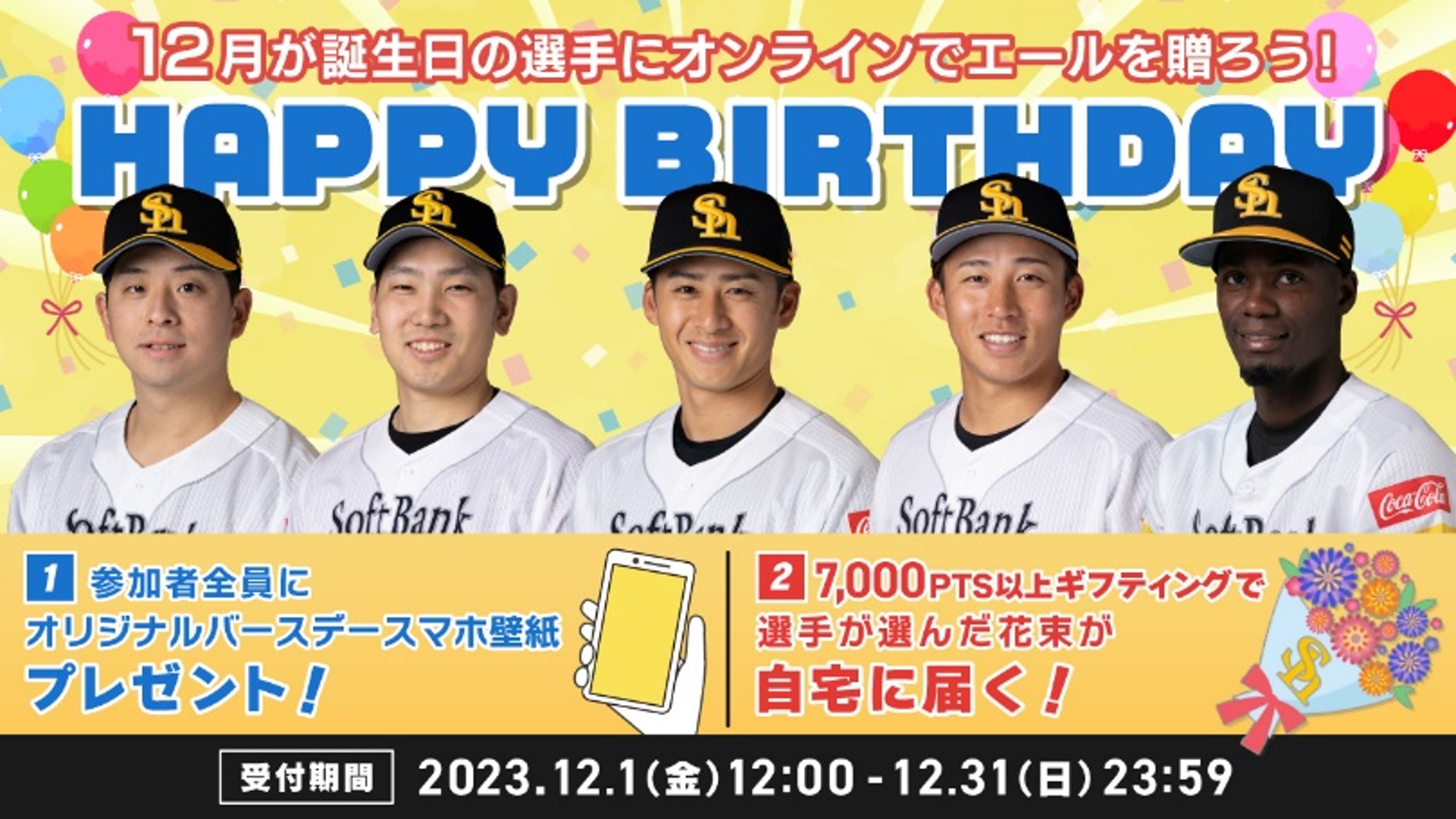 12月1日(金)~31日(日)の期間、12月生まれの選手へエールを送るギフティングイベントを開催します。専用サイトからメッセージやギフティング用のスタンプで応援の気持ちを投稿してください。イベントの参加者全員がもらえる限定プレゼントや、選手が選んだ花束のお返しもご用意。お誕生日を迎える選手にたくさんのエールのプレゼントをお待ちしています!