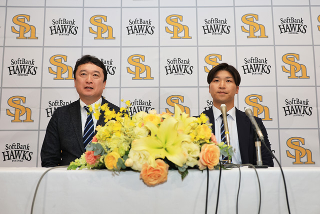 12月11日(月)、長谷川威展投手(背番号59)の入団会見が行われました。