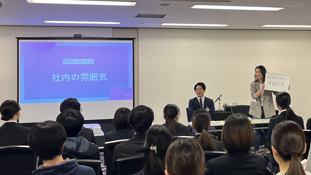 当日は両社の人事担当者・先輩社員・内定者が登壇し、それぞれの会社の特徴や魅力をさまざまな角度から紹介。東京・大阪の2会場・計4回で、延べ173名の学生のみなさんにご参加いただきました。