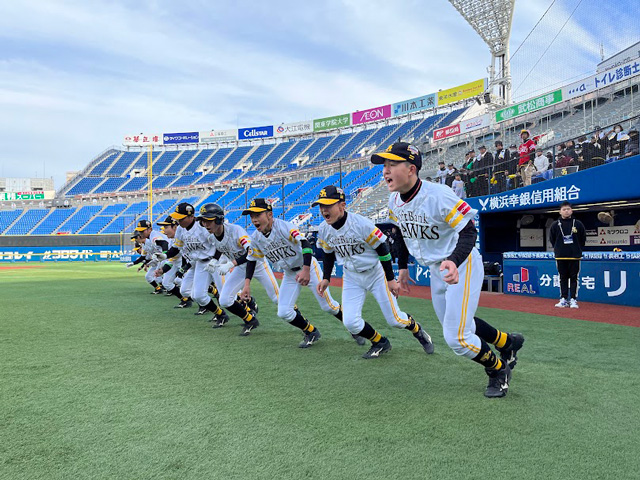 「NPBジュニアトーナメント2023 KONAMI CUP」の大会2日目に臨んだホークスジュニアは12月27日、横浜スタジアムで広島東洋カープジュニアと対戦。初戦に敗れ、準決勝に進むためには大量得点での勝利が求められる試合で、打線が爆発し、狙い通りの大勝を飾った。その結果、予選トーナメントの全試合が終了し、TQB方式によりワイルドカードでの決勝トーナメント進出が決まり、翌28日の準決勝に駒を進めた。