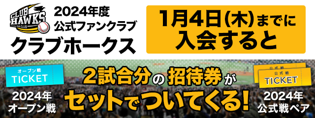 公式ファンクラブ「クラブホークス」の2024年度入会受付を9月5日(火)13:00より開始します。