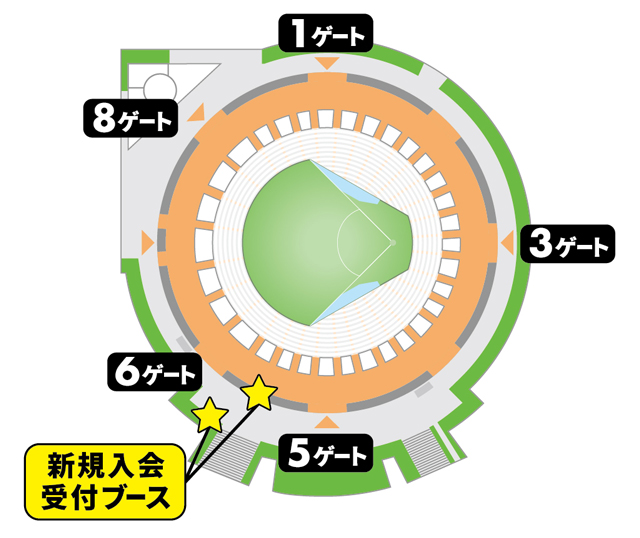 球場外デッキで行いますので、チケットをお持ちでなくてもお手続きいただけます。