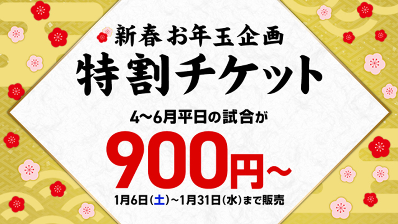 ご購入の際は必ず「【新春お年玉企画】特割チケット」をお選びください。通常のA指定席・外野指定席をご購入いただいても、割引価格ではご購入いただけません。