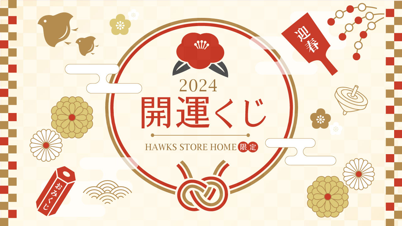 明けましておめでとうございます!HAWKS STORE HOME は、1月3日(水)11:00より営業を開始いたします。これに合わせて、新年の運試しに豪華景品が当たる開運くじや若鷹ガチャ2024干支ver.を販売します♪ぜひHAWKS STORE HOMEで新年最初のお買い物をお楽しみください♪