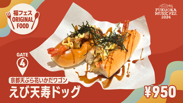 | 縁起の良い食材である海老(の天ぷら)を使用した新感覚ドッグ | |