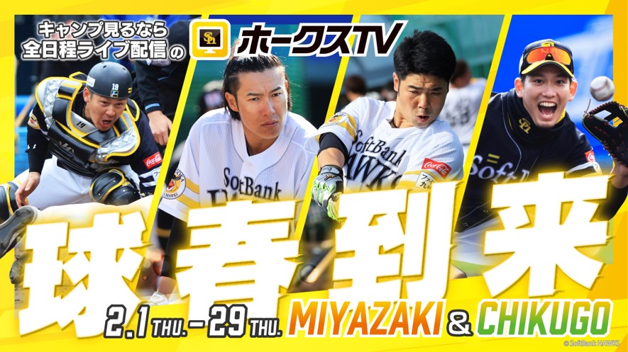 球春到来!動画配信サービス「ホークスTV」では、2月から始まる春季キャンプ・スプリングトレーニングの模様を全日程ライブ配信でお届けします!毎年好評のマルチアングル配信では宮崎・筑後あわせて4チャンネルの中から見たい映像をご自身で選んでお楽しみいただけます。