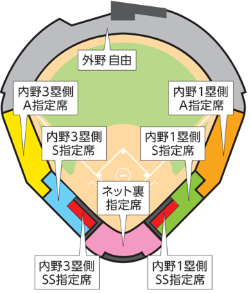 | 内野1塁側A指定席 | 5,800円 | 5,300円 | 6,300円 |