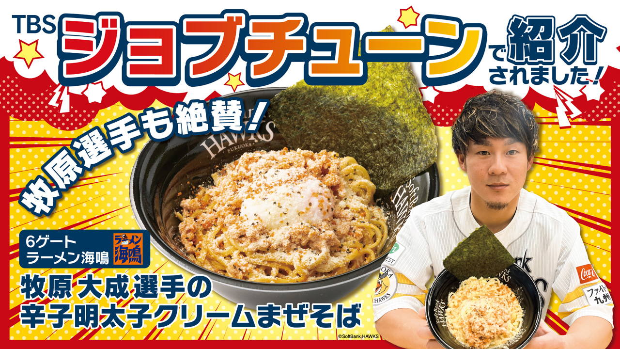 1月20日(土)に放送されたTBS系「ジョブチューン」の球場飯グランプリにて、PayPayドーム6ゲート ラーメン海鳴の「牧原大成選手の辛子明太子クリームまぜそば」が1位に選ばれました!!