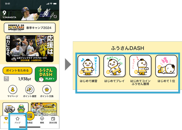 - ※新機能「バッジ」の利用には、クラブホークス会員又はタカポイント会員の会員登録が必要となります。