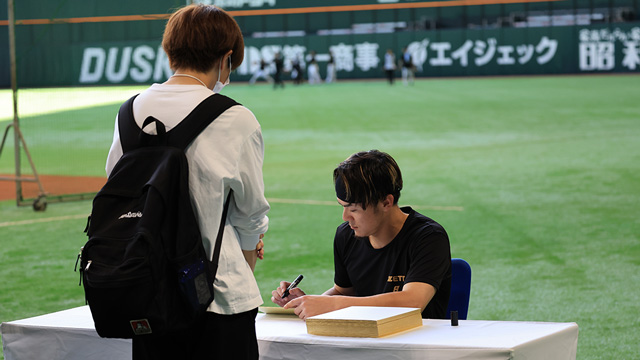 宮崎春季キャンプでの選手サイン会参加と、オリジナルのプロマイドカード一式(非売品)、ファイト!九州デーin宮崎のチケットがひとつになった豪華セット!5月11日(土)