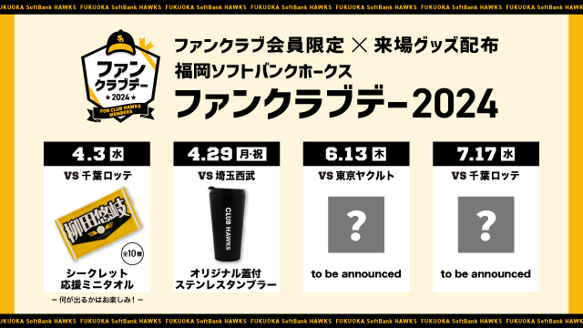 対象試合日に当日の観戦チケットをお持ちのうえ、ご来場のクラブホークス会員に先着で特別来場グッズをお渡しします。